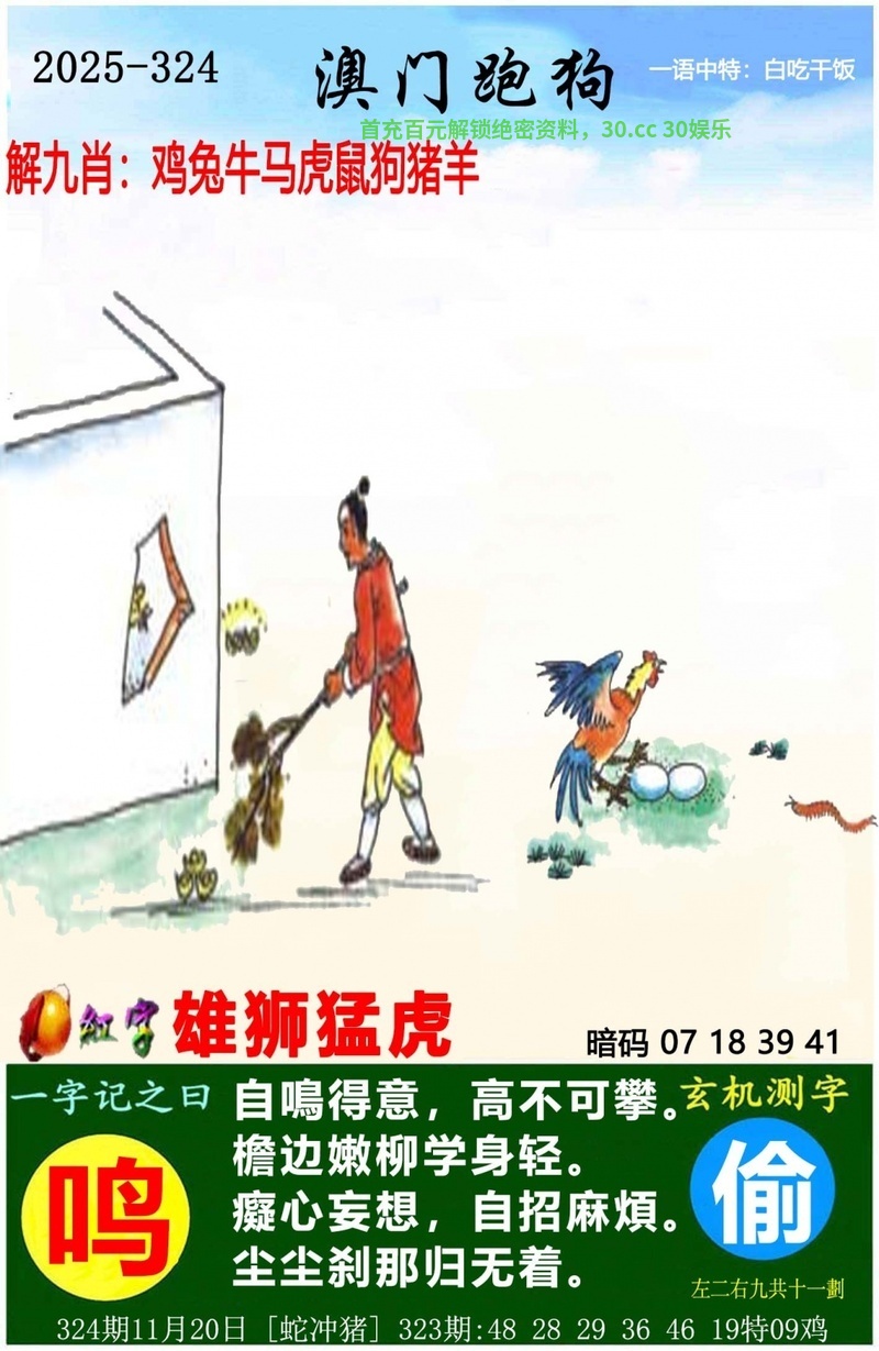 | 323期:九肖【马牛猪蛇兔鼠猴龙鸡】开:鸡09准 |
